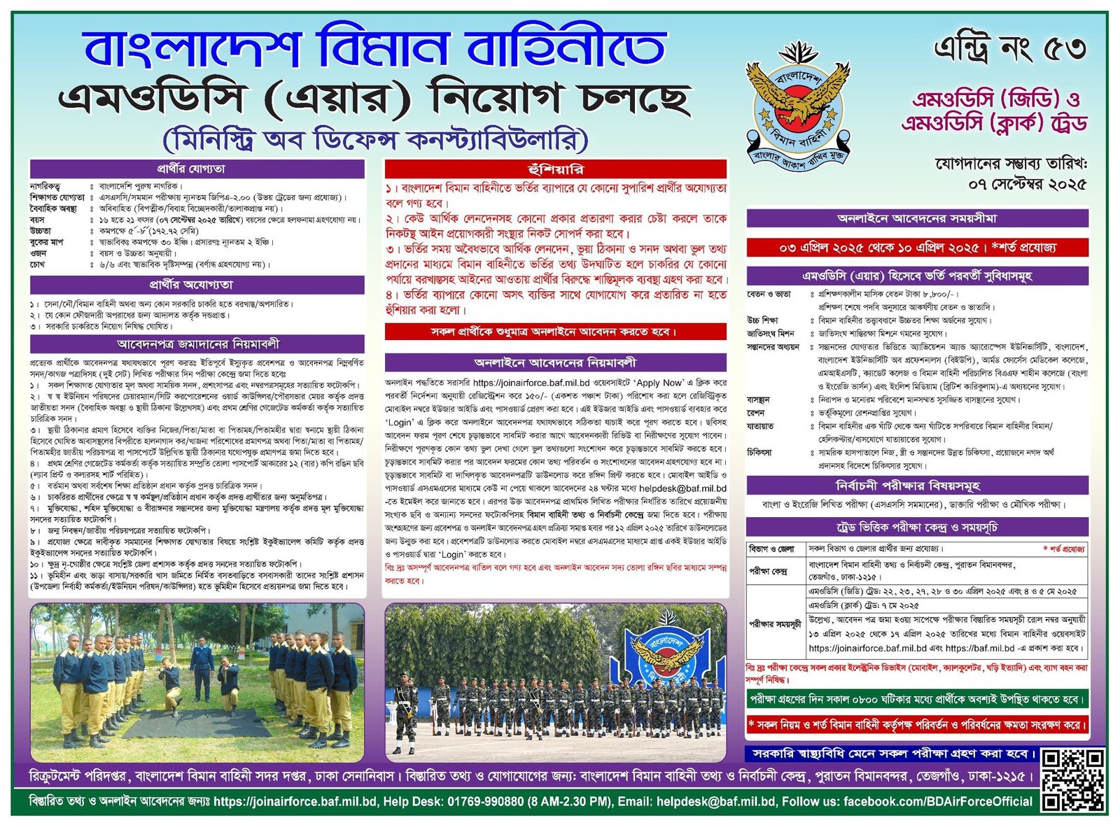 বাংলাদেশ বিমান বাহিনী এমওডিসি ৫৩ এন্ট্রি সার্কুলার | Bangladesh Air force MODC Entry No-53 Circular
